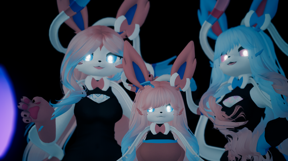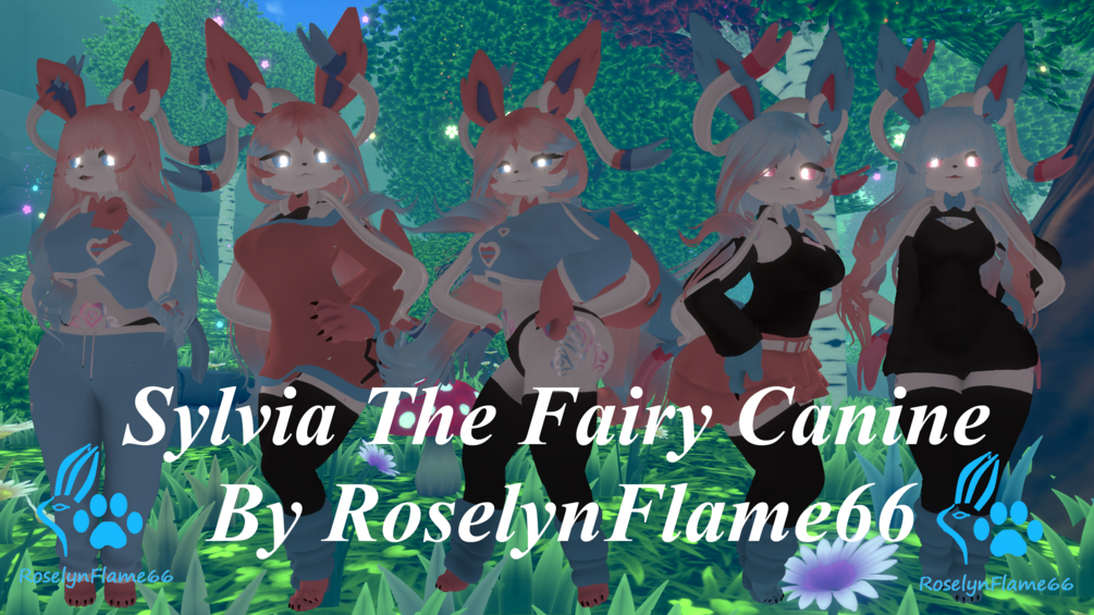 Avatar inspired by the fairy canine Sylveon! This is a VRChat ready avatar that supports full body tracking and index controllers in VRChat! It is Safe for Work!