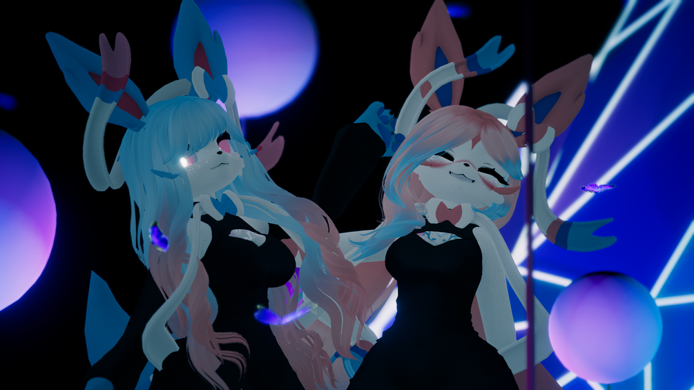 Avatar inspired by the fairy canine Sylveon! This is a VRChat ready avatar that supports full body tracking and index controllers in VRChat! It is Safe for Work!